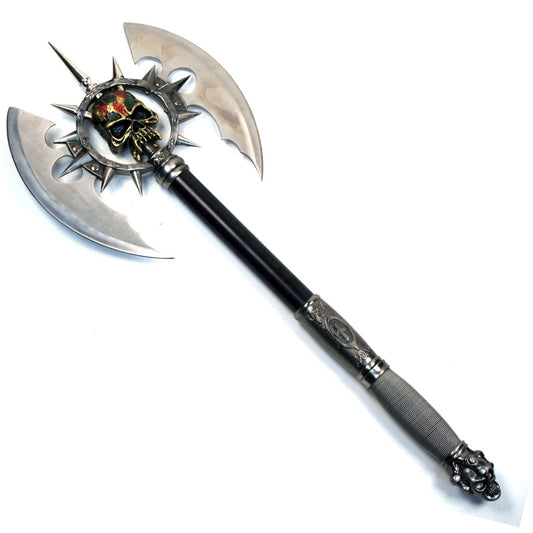 Ace Martial Arts Supply Death's Head Skull Fantasy Battle Axe with Plaque