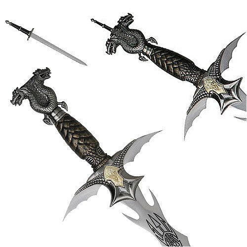 Ace Martial Arts Supply Stainless Dragons Breath Fire Medieval Fantasy Sword with Plaque and 2 Daggers, 44-Inch, Red