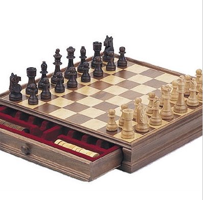 DELUXE WALNUT CHESS & CHECKER GAME GIFT SET + BONUS STORAGE PLAYING BOARD