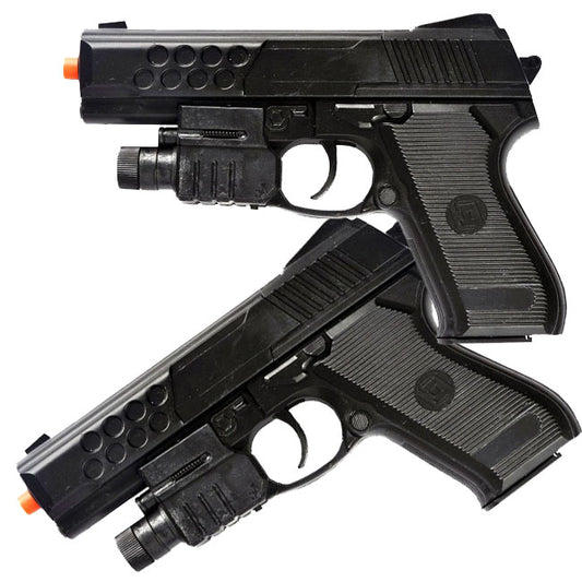 2 NEW SPRING AIRSOFT PISTOLS HAND GUN w/ LASER & LED FLASHLIGHT & 6MM BB BBs