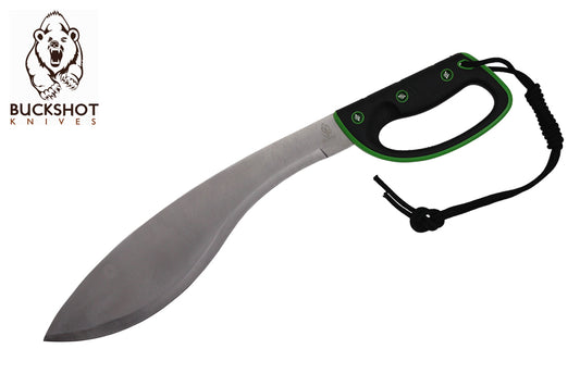 21" Kukri Machete Chrome Blade Hunting Knife With ABS Green And Black Handle With Black Paracord Roped On End Of The Handle