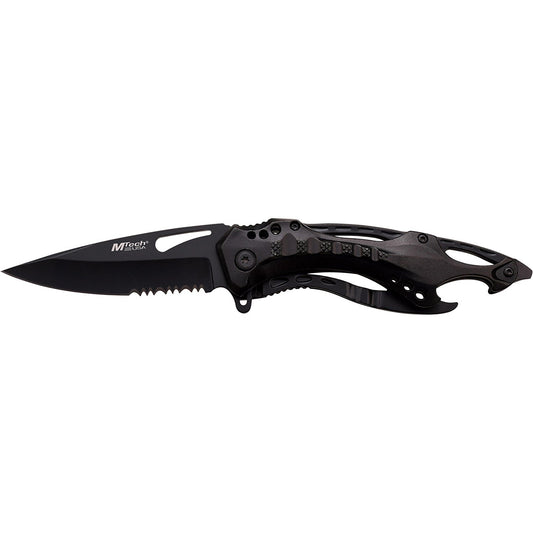 MTech USA MT-424 Series Folding Tactical Knife, Black Straight Edge Blade, 4-3/4-Inch Closed