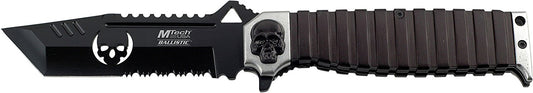 MTech USA MT-A820 Series Ballistic Sping Assist Knife, Black Half-Serrated Blade, 5-Inch Closed