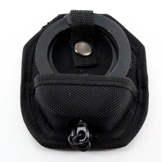 Professional Heavy Duty Black Hinged Police Style Handcuffs Double Lock with Duty Handcuff Nylon Case Holster
