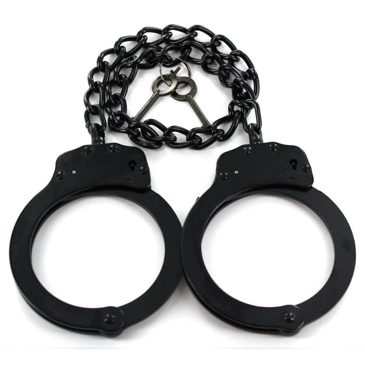 Professional Double Lock Handcuffs & Leg Cuffs - Stainless Steel - Black