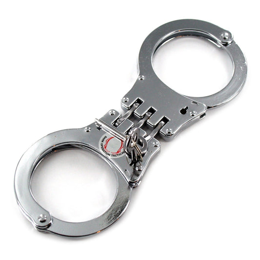 Professional Heavy Duty Silver Hinged Police Style Handcuffs Double Lock with Duty Handcuff Nylon Case Holster