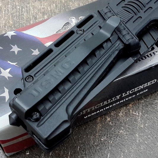 U.S. MARINES Knife Licensed USMC MARINES Assisted Military Knives BLACK Tactical Tanto Knife