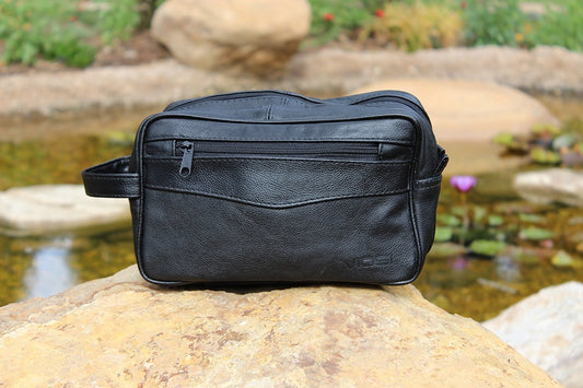 Viosi Genuine Leather Toiletry Travel Bag w/ two Zipper Compartments