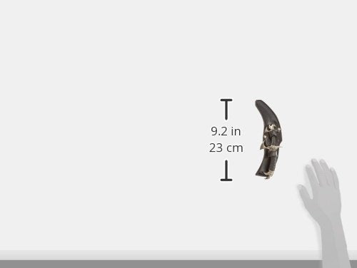 This is an outstanding dagger set for the fantasy collector or even someone who wants to accent their work desk with an eye-catching set of letter openers! Both daggers feature stainless blades with fantasy etchings. The cast metal handles offer unique details, outstretched guards, and a bronze finish. The set includes a leather sheath which houses both daggers. The large dagger offers a 4" blade and measures 8 1/4" overall, while the small dagger offers a 2 1/2" blade and measures 5 1/4" overall