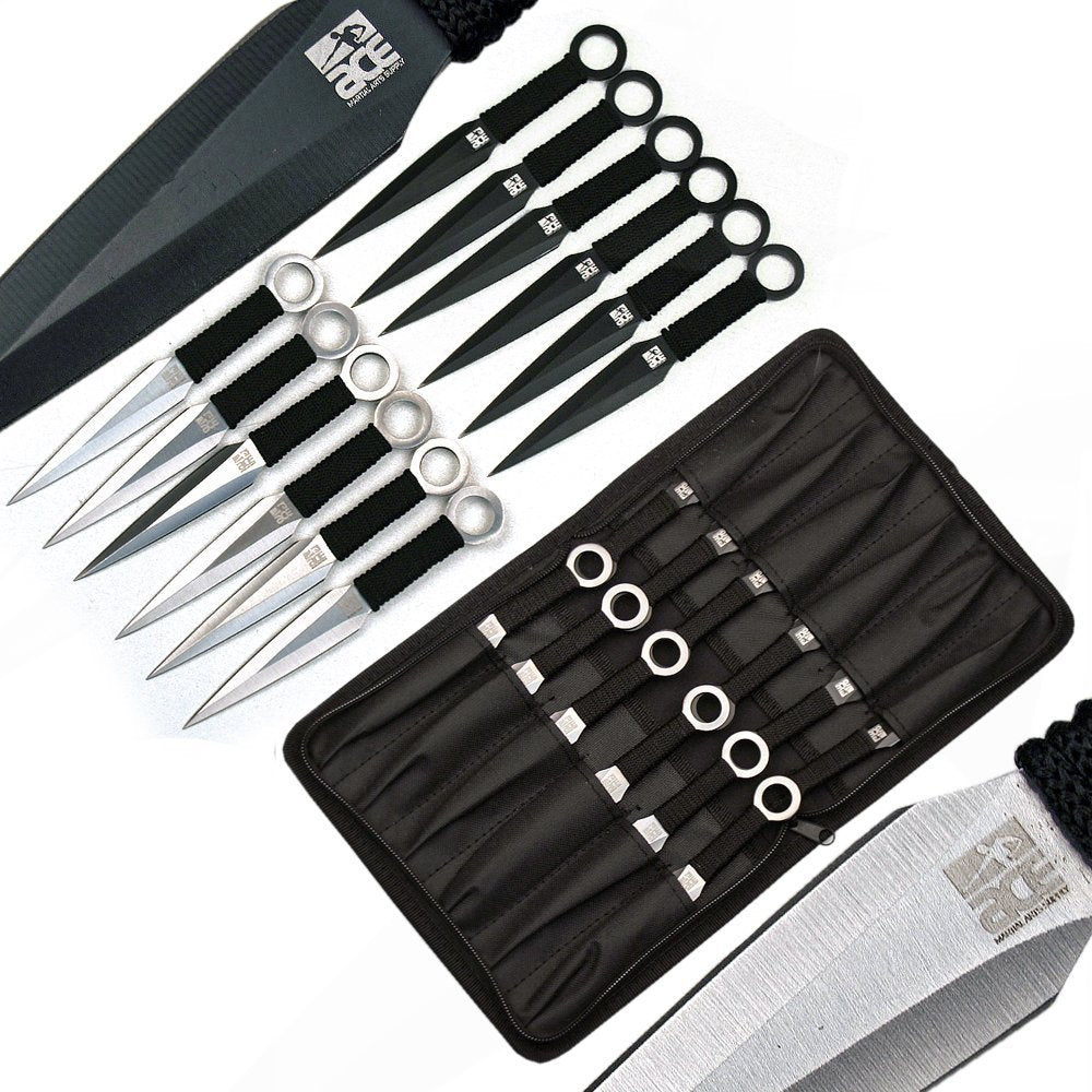 Ace Martial Arts Supply Ninja Stealth Black Throwing Knives with Nylon Case (Kunai 12 Pieces Set)