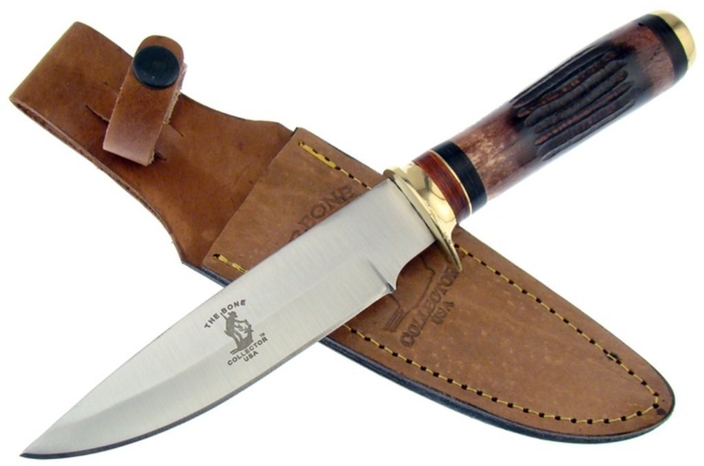 440 stainless steel polished blade fixed hunting knife. brand The Bone Collector. Authentic bone handle.