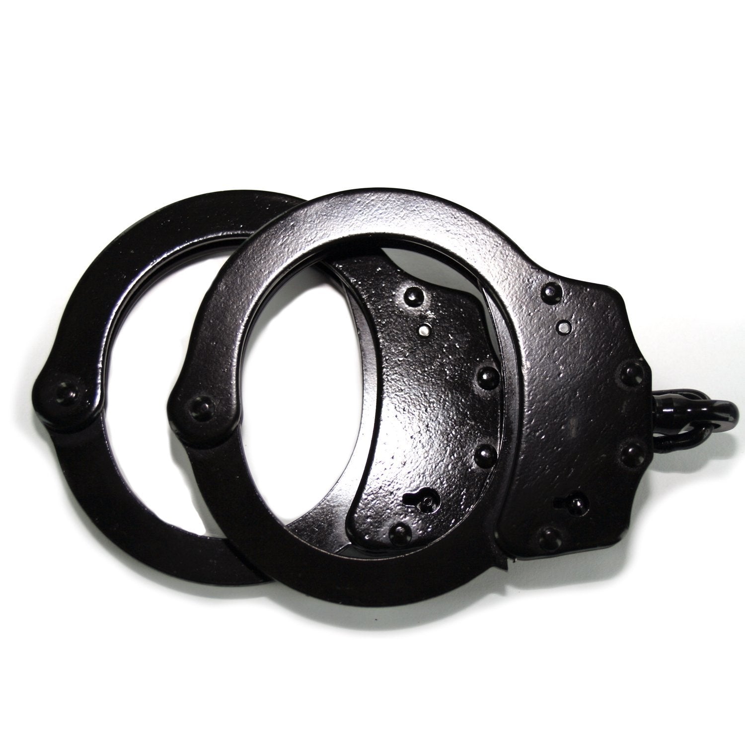Professional Grade Police Edition Heavy Duty Security Handcuffs Silver Chrome Steel Double Lock with case (BLACK)