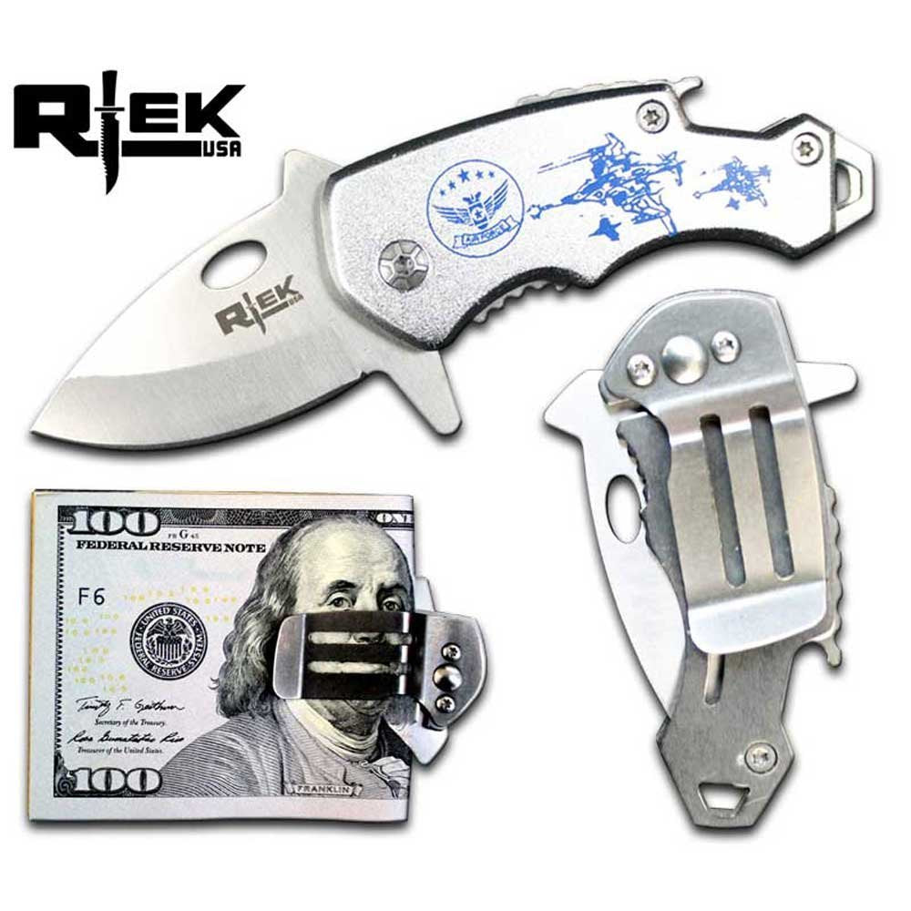 RTek 8" Overall Tactical Bottle Opener Folding Spring Assisted Open Pocket Knife 7 Variations Army, Navy, Marines, Special Forces, Fire Fighter, Police, Air Force (Air Force)
