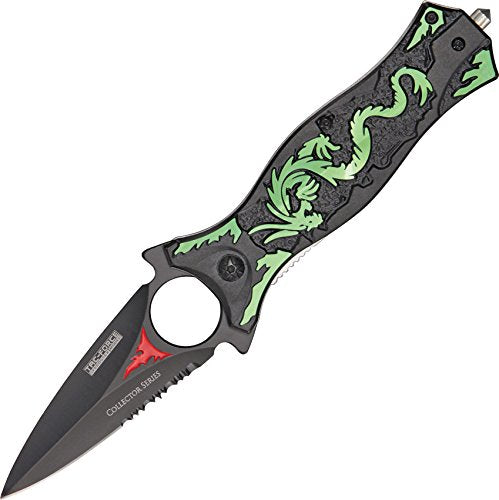 TAC Force TF-707 Series Assisted Opening Folding Knife, Black Half-Serrated Blade, Dragon Handle, 4-1/2-Inch Closed