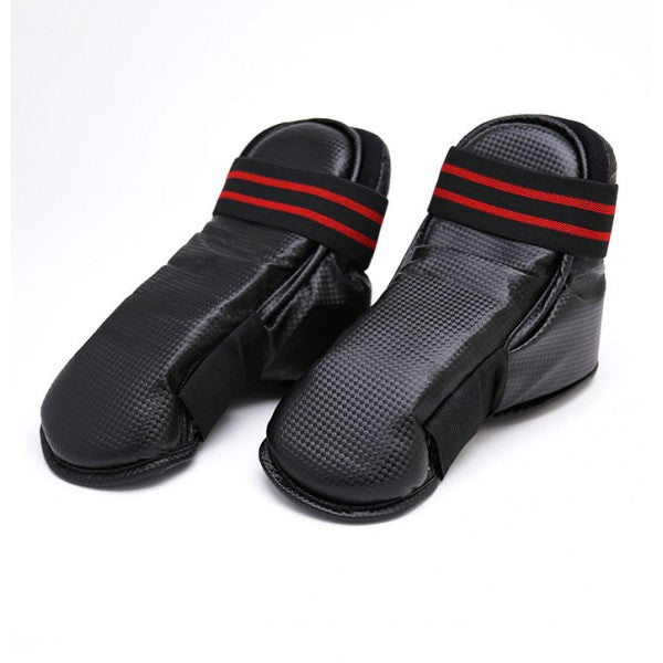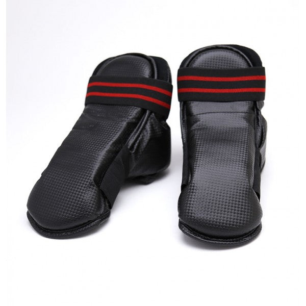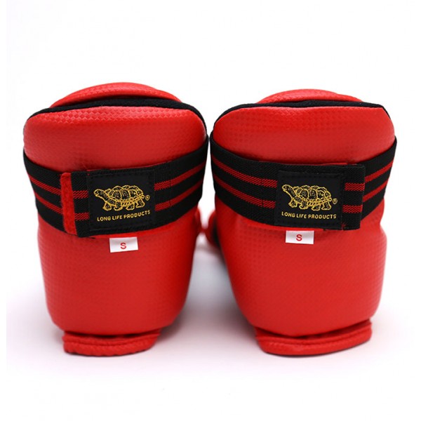 The vinyl kicks are constructed of a high quality, vinyl-covered protective foam, designed to keep your foot and ankle safe from injury. The special foam is designed to withstand high impact and the open-bottom design gives you a better balance. An elastic hook-and-loop makes adjusting easy and provides you with a safe snug fit.